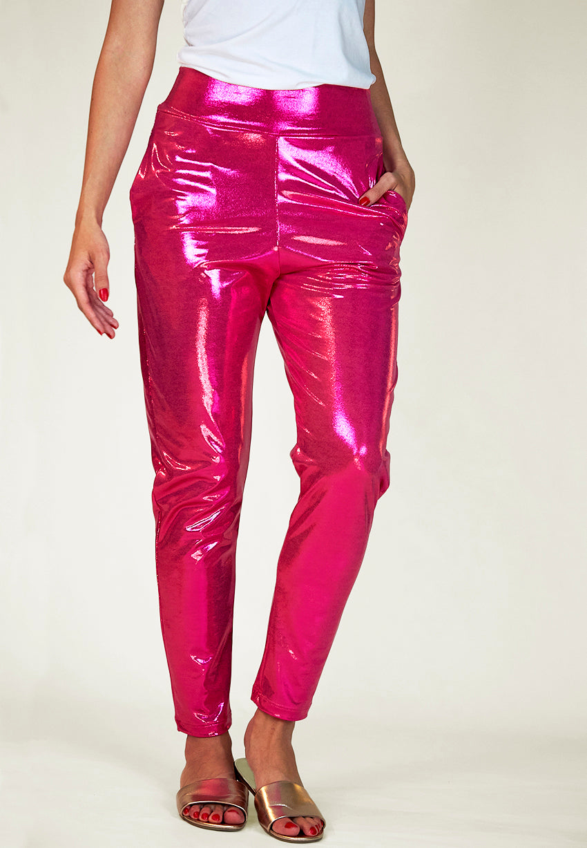 "I am starting to see big brands making metallic pants but yours are much better! Got mine in Ruby Red size Large and I love them! I can't wait to wear them!"