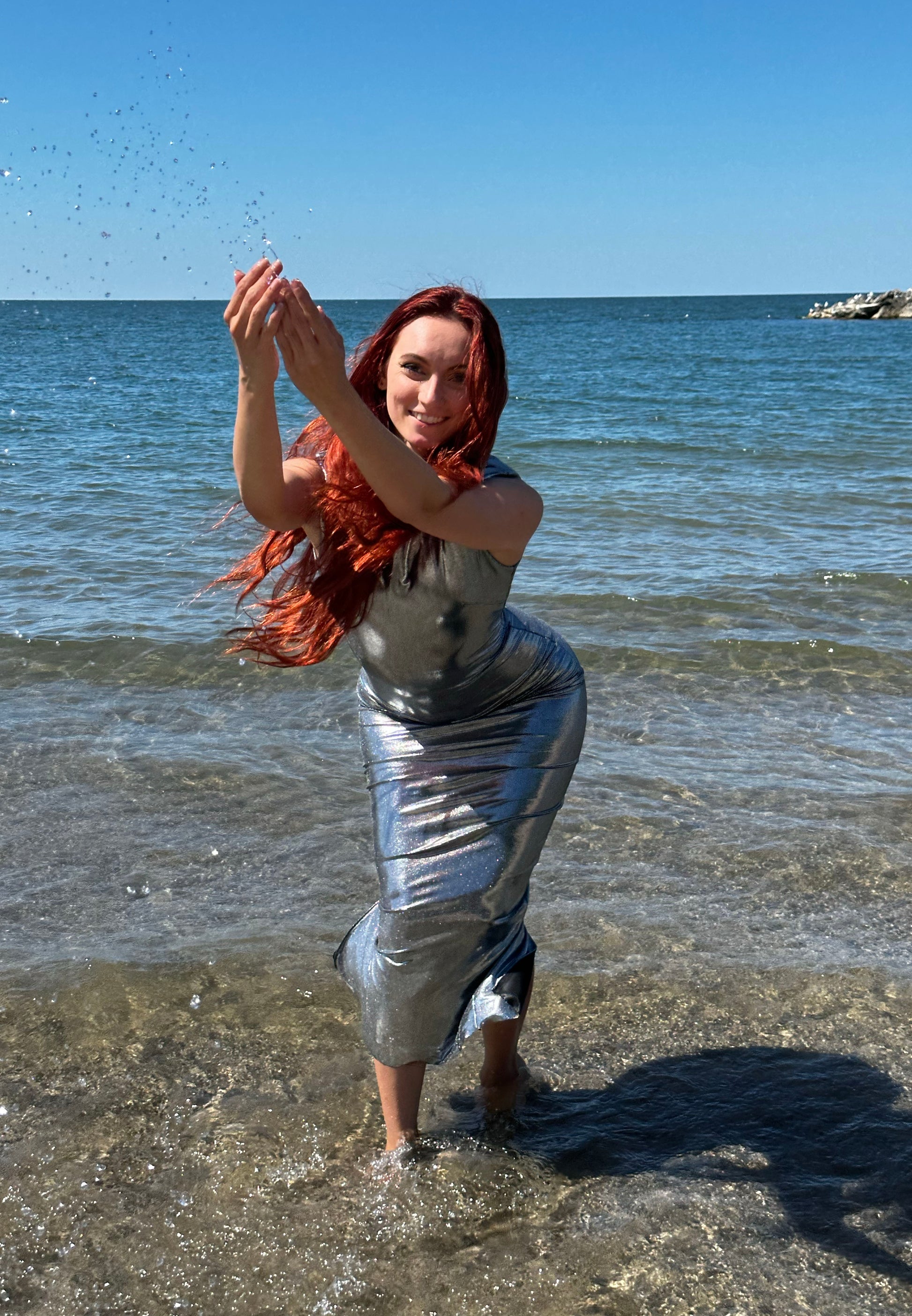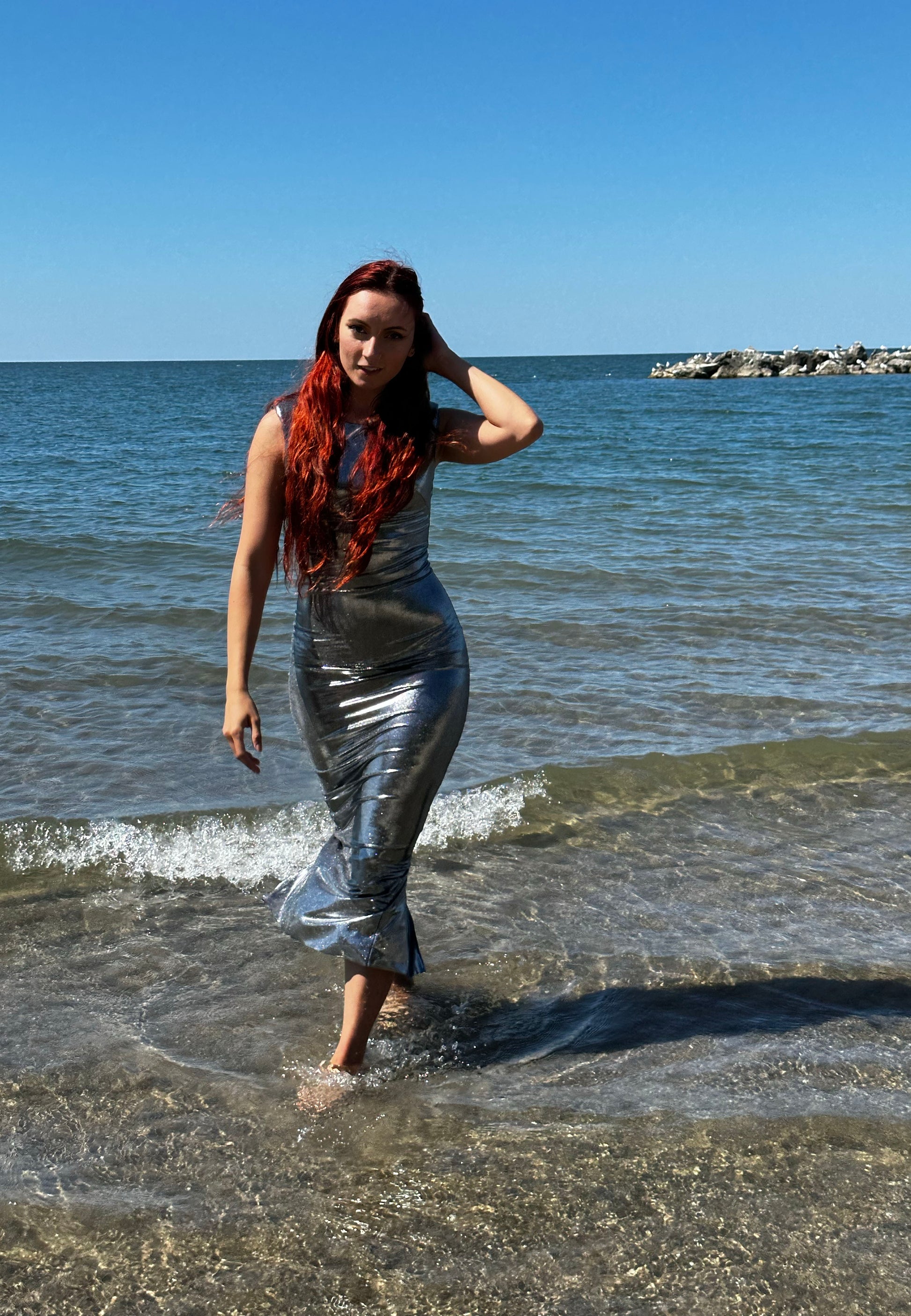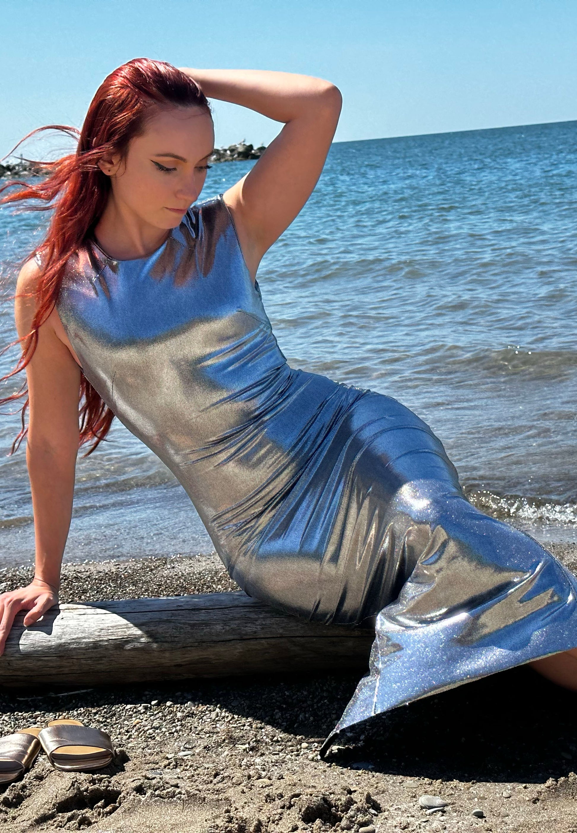 Tailored to perfection, this dress hugs your curves and lifts you up, accentuating your figure in all the right places. Long and figure enhancing, moves and flows with you as one. So comfortable and fun that you'll find a 1000 excuses to wear it all the time! Dress it up for a night out or dress it down with flats. Relax, go to the beach and walk by the water barefoot. You can get it wet, its fine.