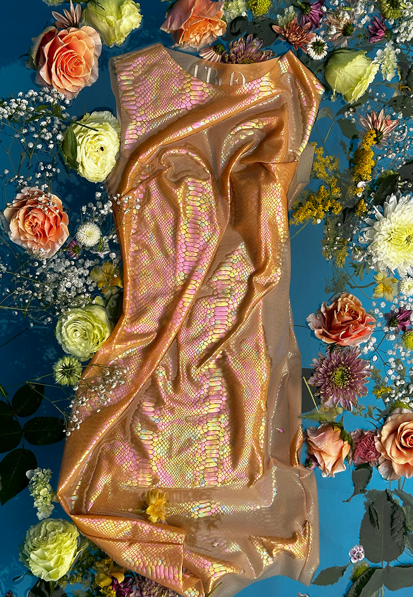 INSPIRED BY NATURE / FEELS LIKE A SECOND SKIN / HUGS YOUR CURVES WHILE SHIMMERS AS YOU MOVE
